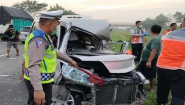 “Untuk laporan yang kami terima, kendaraan minibus ini menabrak belakang kendaraan yang berada di depannya,” terang AKP Angga.