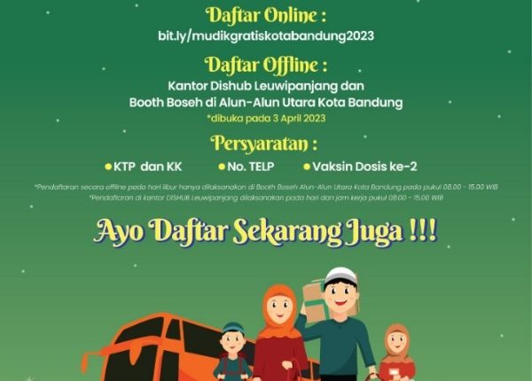 BANDUNGASI.com : Pemerintah Kota (Pemkot) Bandung kembali menggelar Mudik Bareng gratis pada musim mudik Hari Raya IdulFitri 1444 hijriah ini. Pendaftaran Mudik Bareng sudah dapat dilakukan mulai Sabtu 1 April 2023 melalui online.